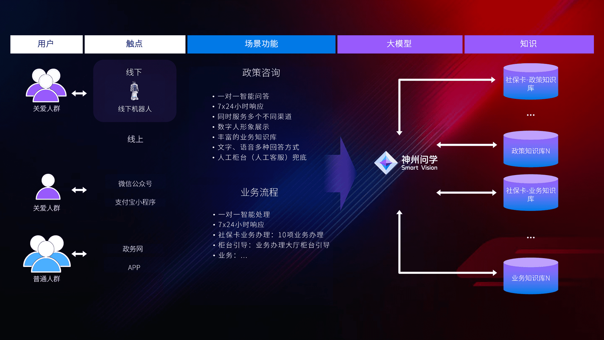 在服务大厅部署客服机器人,,,在线上应用和小程序配置客服数字人,,724小时为群众解答常规问题,,,客服机器人无法处理的,,,转现场人工处理。。